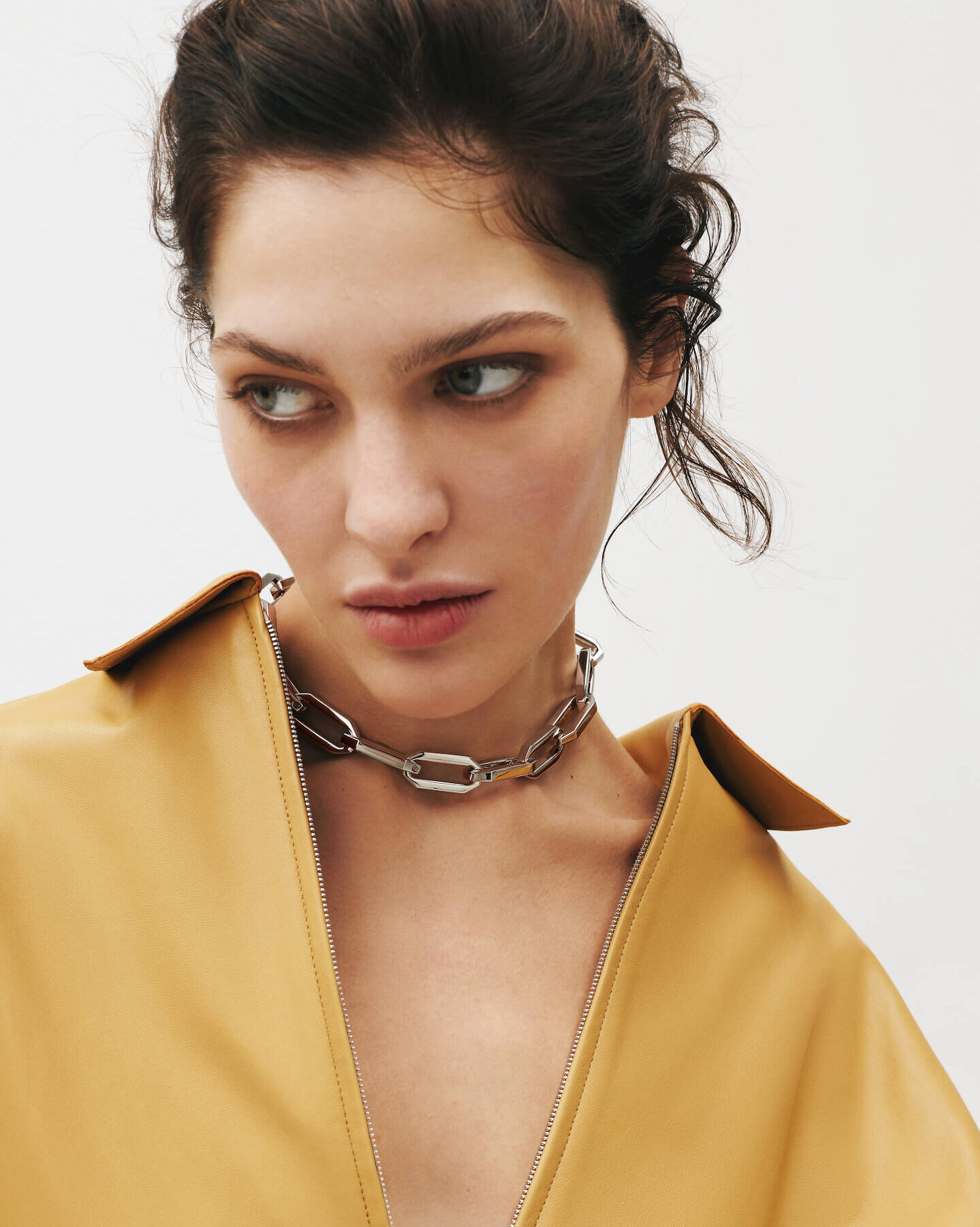 To biżuteria, która nie potrzebuje towarzystwa. Jest samowystarczalny. W połączeniu z obniżonym kołnierzem lub odsłaniającym dekoltem, odsłania coś więcej niż tylko metal – odsłania obraz.