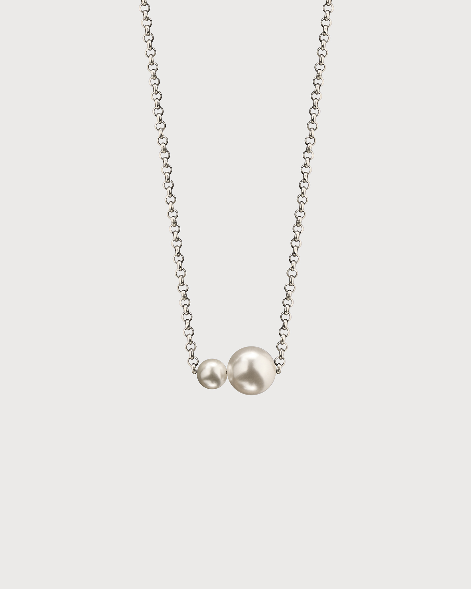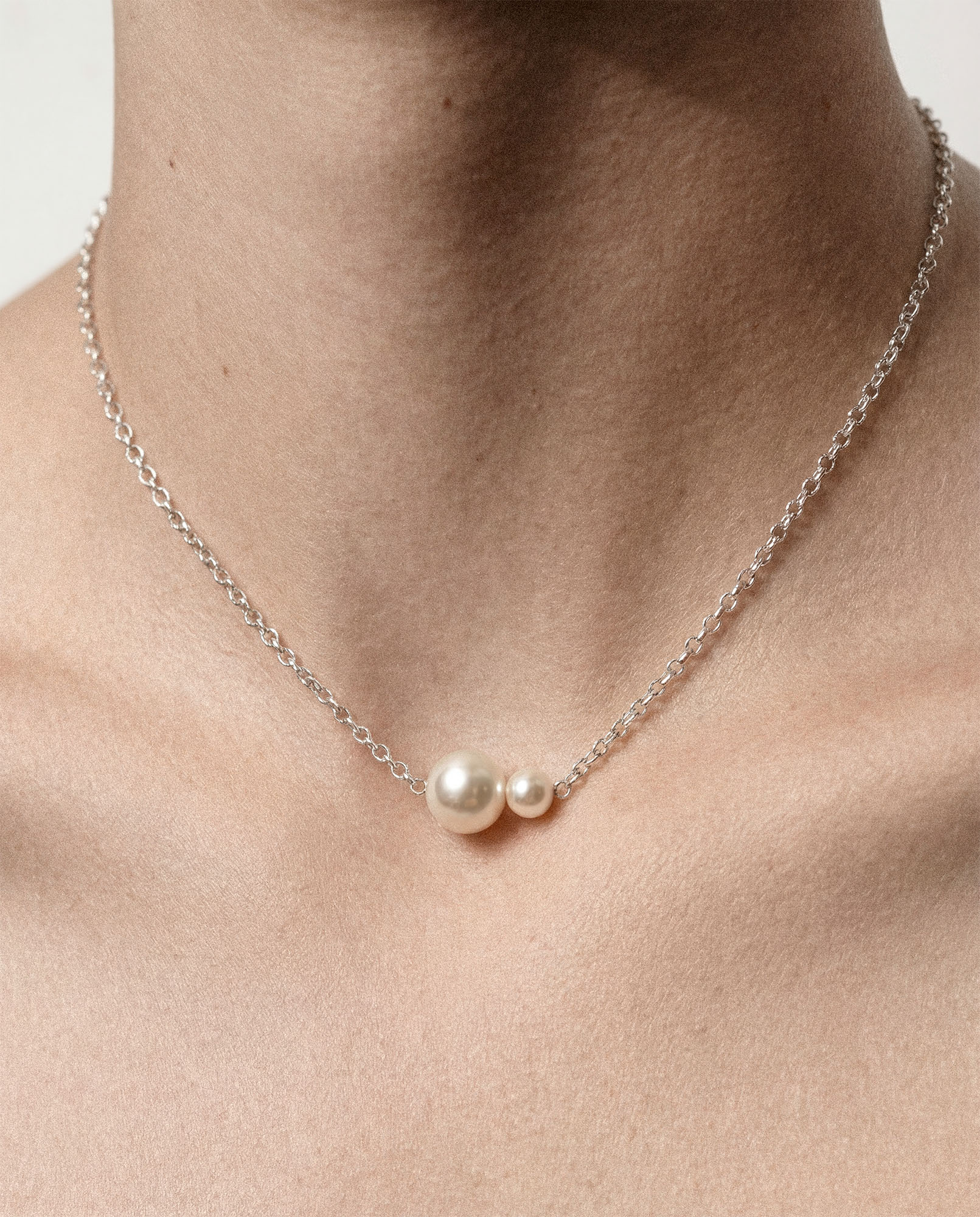 Cienki łańcuszek harmonijnie połączono z dwiema perłami o różnych rozmiarach, tworząc delikatną kompozycję o lekko asymetrycznym charakterze. Ten projekt wygląda nowocześnie, ale jednocześnie zachowuje klasyczną estetykę, która nigdy nie wychodzi z mody.