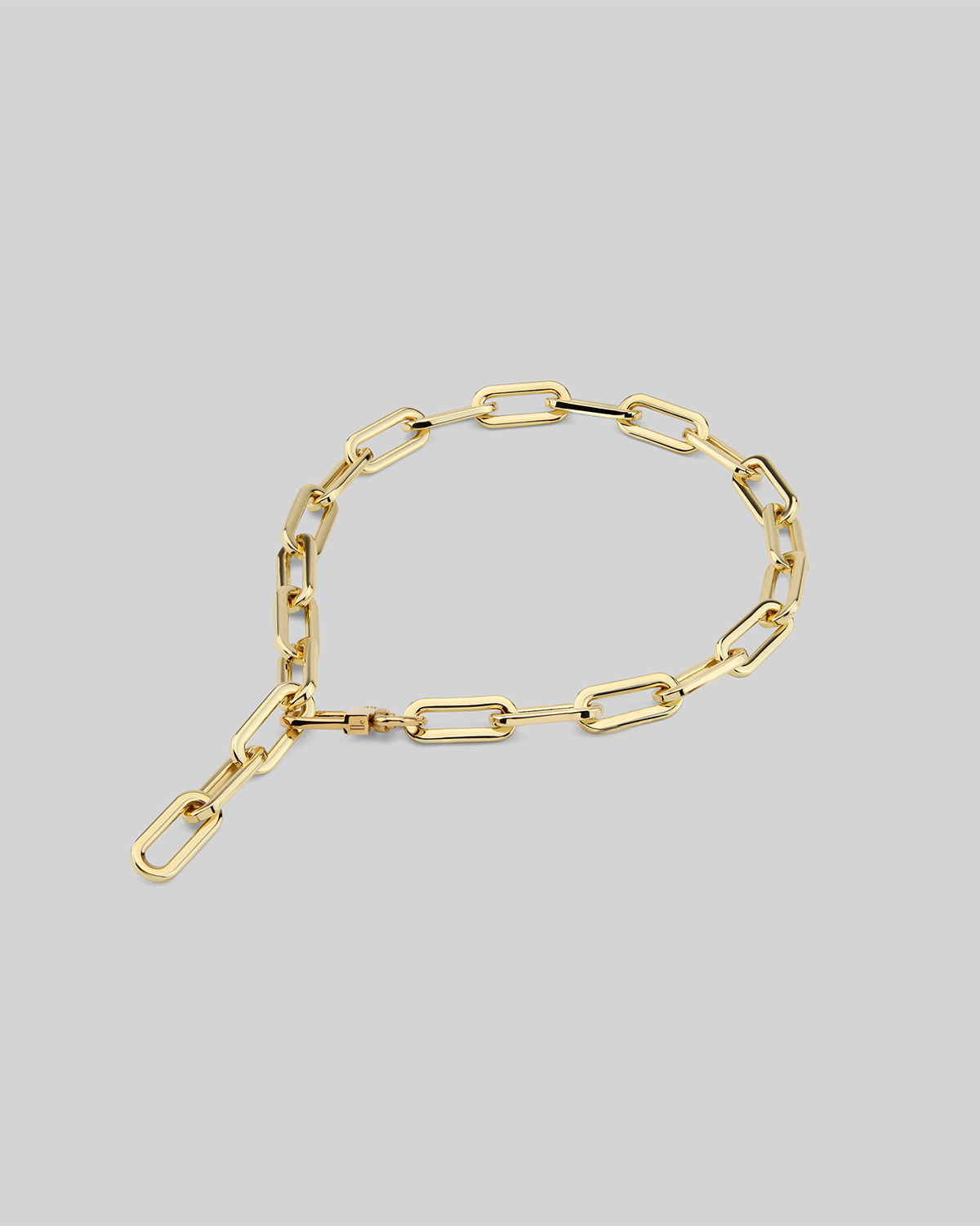 Złoty naszyjnik uzupełnia pozłacany 24-karatowym złotem karabińczyk.
